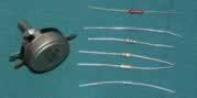 在真空中加热合金,合金蒸发,使瓷棒表面形成一层导电金属膜。刻槽和改变金属膜厚度可以控制阻值。这种电阻和碳膜电阻相比,体积小、噪声低、稳定性好,但成本较高。